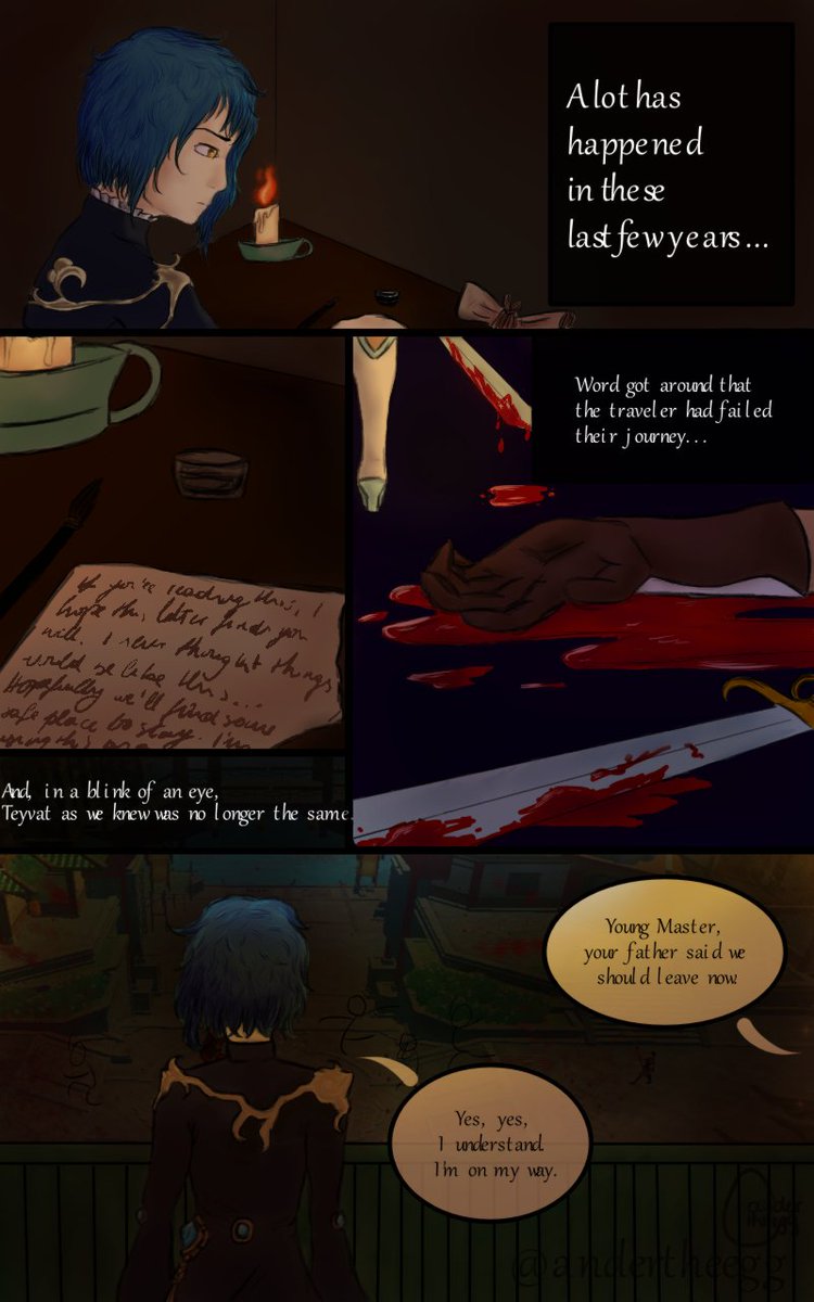 cw// blood here it is! the first part of my genshin apocalyptic comic thingy!! twt please don't ruin the quality 😭 #genshinimpact #fanart #genshinimpactfanart #xingqiu