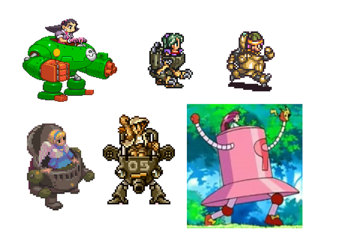 Tron Bonne, Terra, Lucca in Robo, Nina in Ershin, Fio in Slugnoid and Jessie in Potent Pink Jessie Princess Power Mark 1! what a legendary crossover mecha game, classic! 🥹