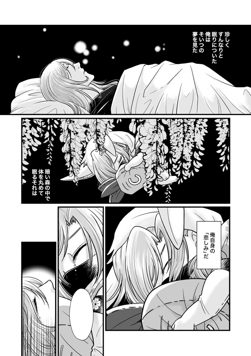 【5/3 新刊サンプル】 「まっくら森でまっててね」(A5/P36/会場頒布価格¥400) 薫の悲しみが生んだうさ屋敷と虎次郎の喜びが生んだマン次郎がある森で出会ったことをきっかけに、虎次郎が薫との関係を変えようとする話です。 部数アンケートご協力いただけると助かります。 forms.gle/KasEhra2p4kjDf…