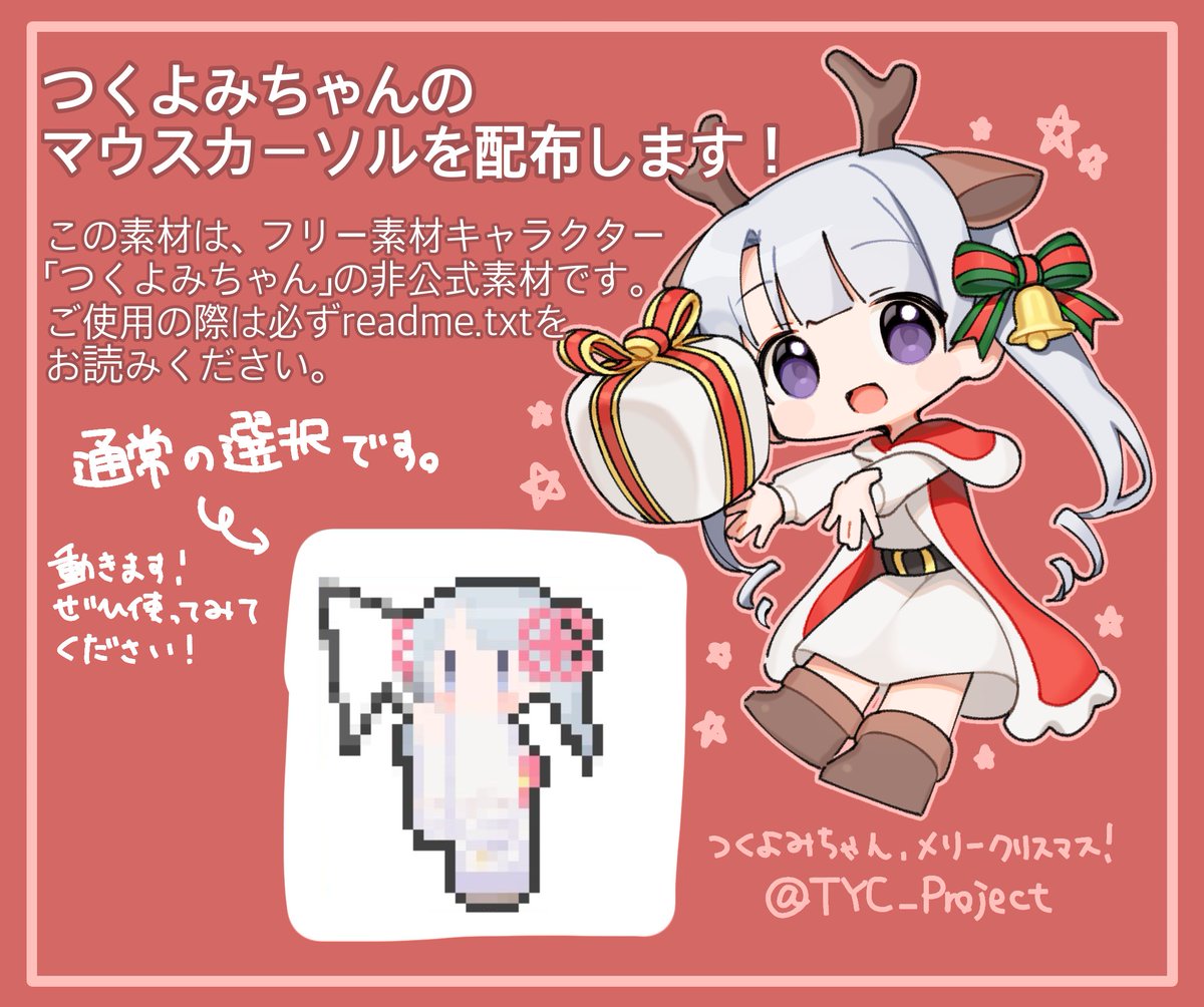 つくよみちゃんのマウスカーソルを作りました✨ クリスマスプレゼントです🎁ぜひお使いください😄 (でもクリスマス限定ではないです!) #つくよみちゃん #つくよみちゃんファンアート 本家様⇒ @TYC_Project ■つくよみちゃん公式サイト⇒tyc.rei-yumesaki.net dropbox.com/s/wgp1dlevuy6c…