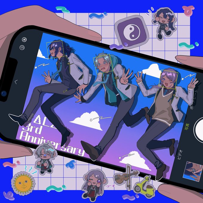 #VΔLZ二周年 #桜魔の土産 #長尾百景 #描いた晴 #上弦画 ジョジョ立ちするVΔLZ(幻覚) いつも楽しそうな3人が大好きです!!