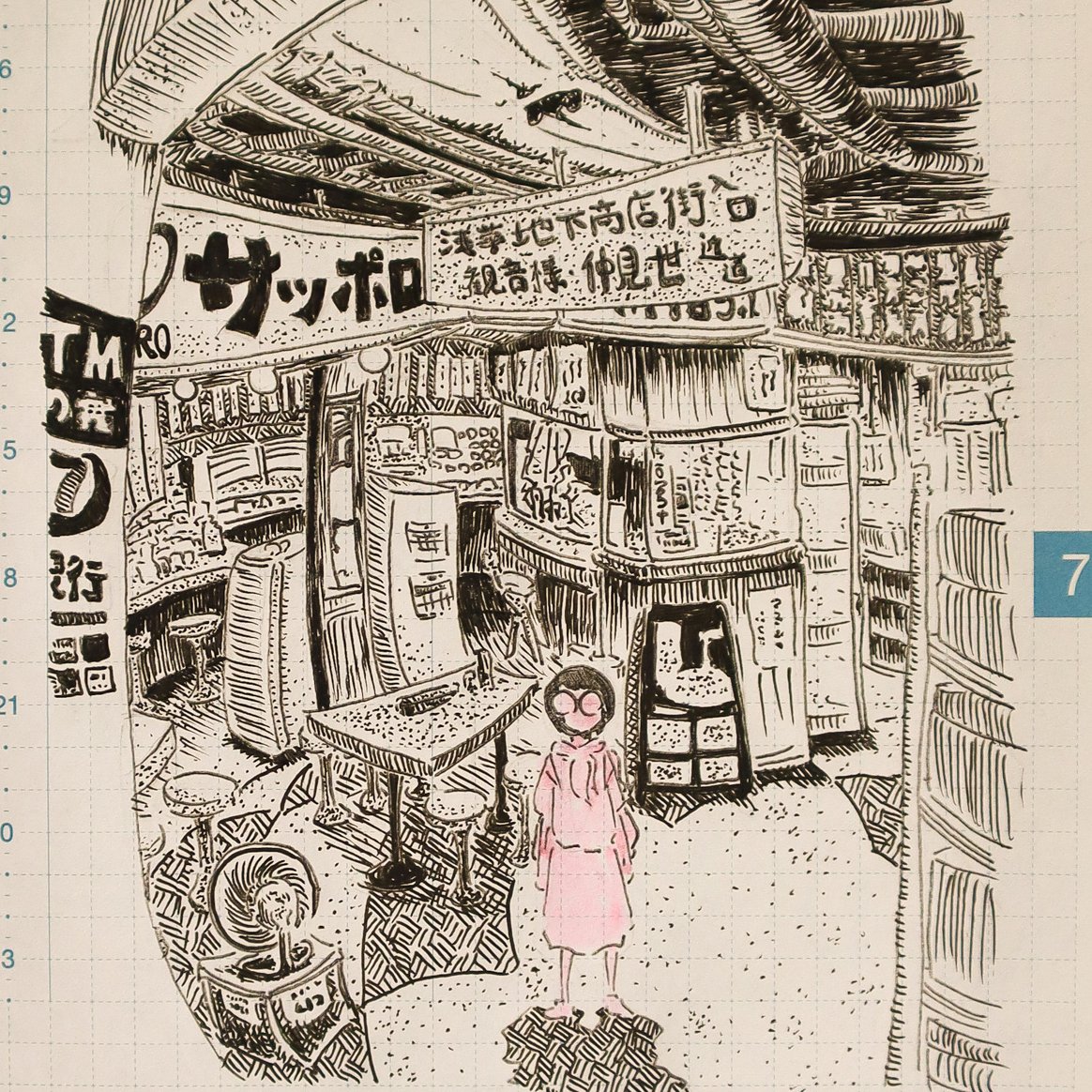 浅草の地下商店街と中学生の女の子_7月10日(日)#絵日記