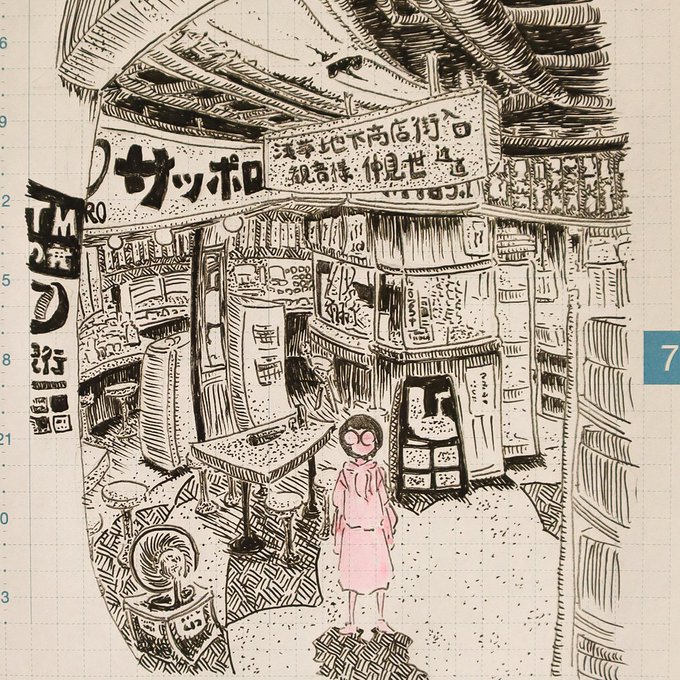 1 15 浅草の地下商店街と中学生の女の子_7月10日(日)#絵日記 22/07/16 18:41