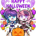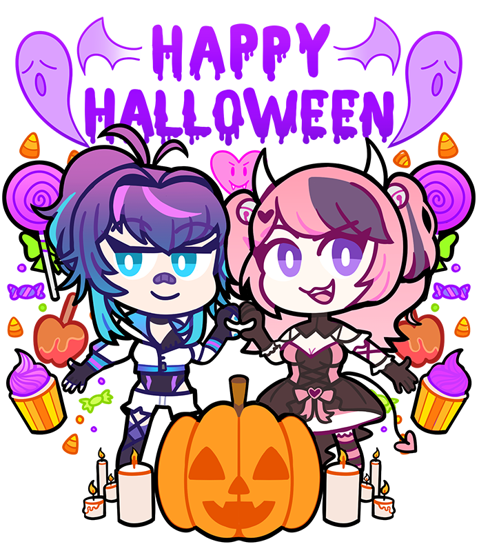i was commissioned by @NoblePhantasma to draw @ProjektMelody and @ironmouse in my halloween YCH! this was so much fun - i had a blast drawing them! 🎃👻🍭🍬 #projektmelodyfanart #ironmouseart
