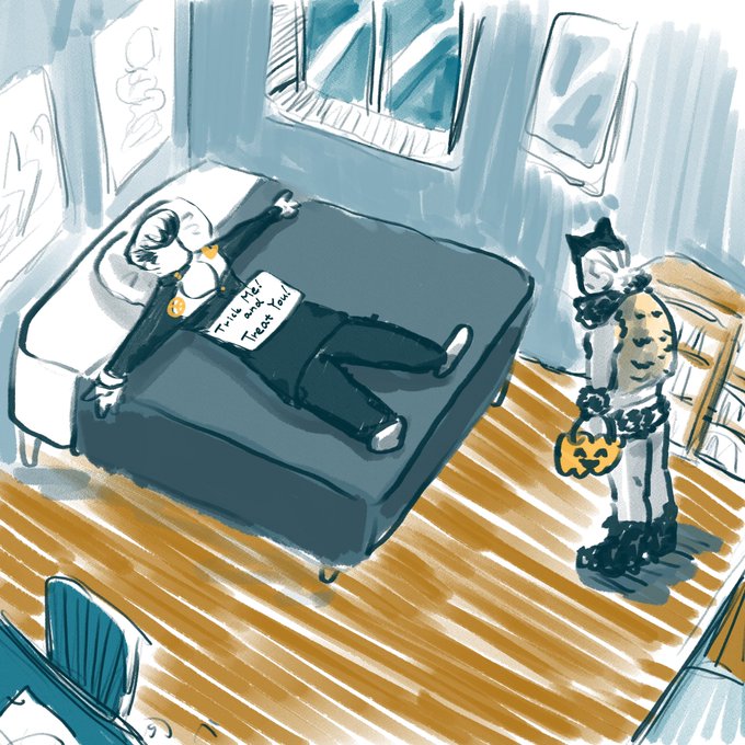 24 117 ⚠️これは億仗…?? 絵描けないから去年の過去絵載せよ…と思ったら去年も描く時間なかったっぽい…ハッピーハロウィン!👻👻🎃 21/10/31 07:31