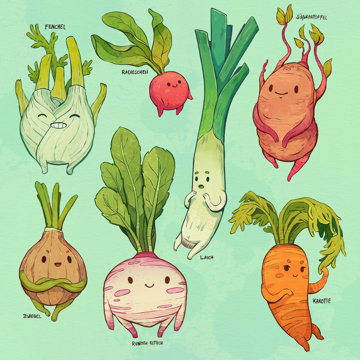 Think I didn’t post these here yet. Which one is your favorite? #cute #art #illustration #veggie #digitalart #cuteart
