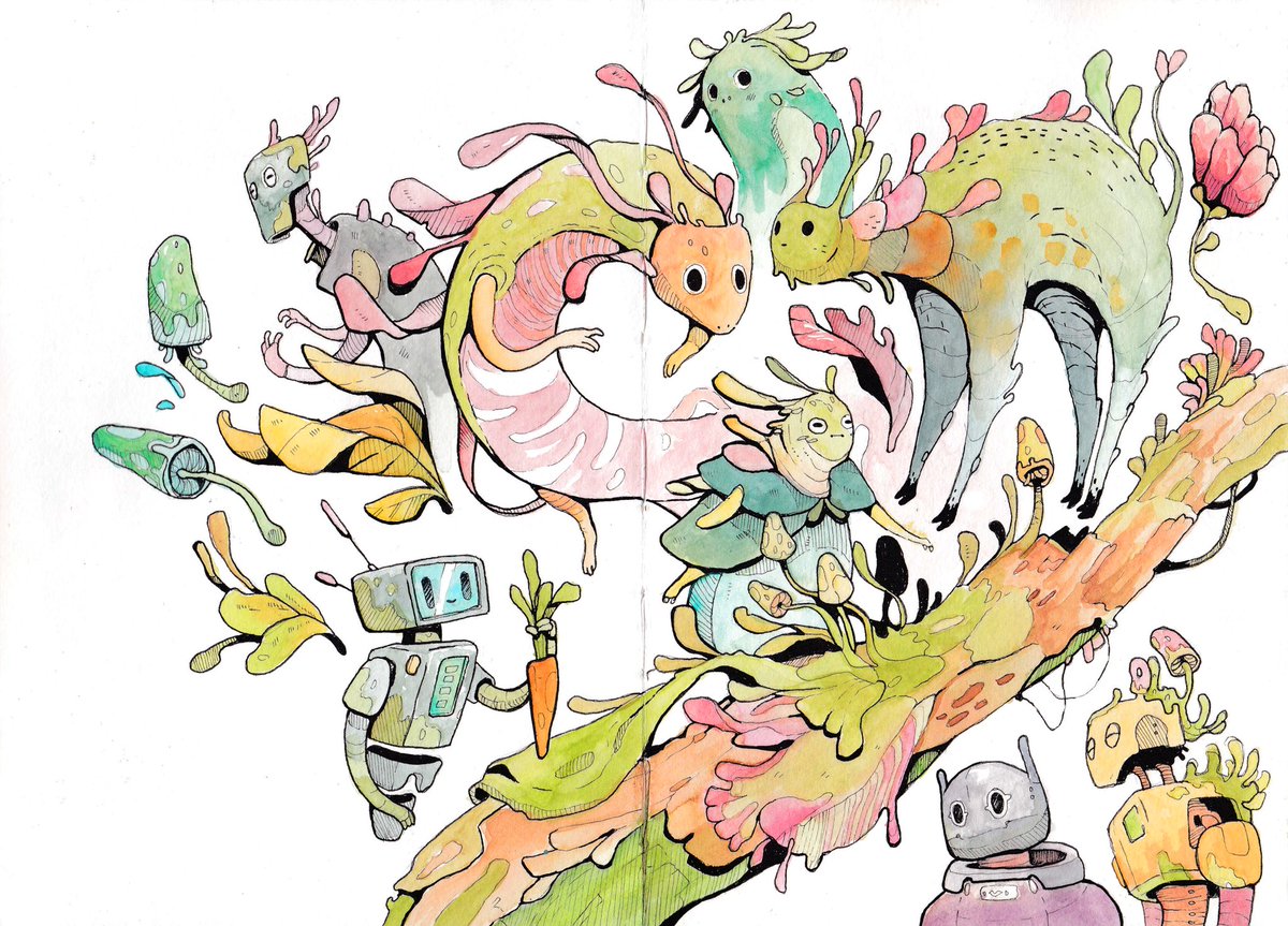 Creatures from my imagination 🌱 #sketch #sketchbook #art #drawing #cuteart #creature #watercolor