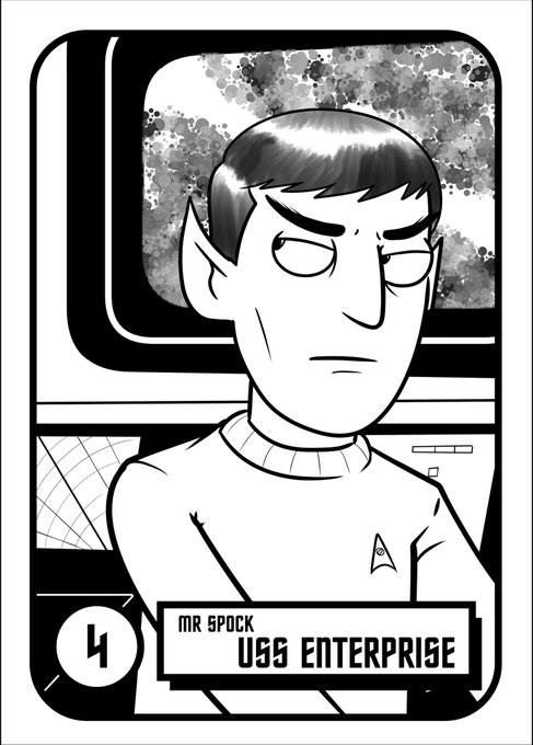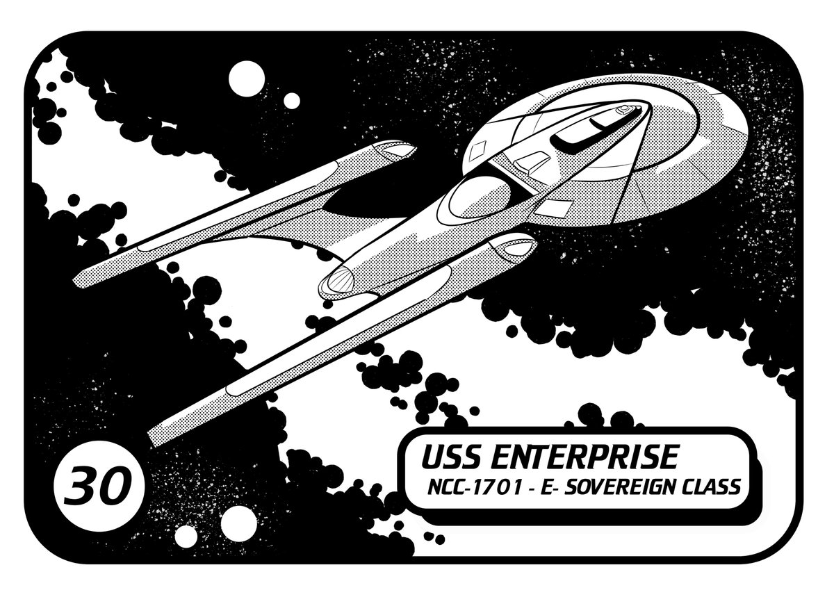 #Inktober Then last, but not least, a cartoon trading card of the 6th starship to bear the name, USS Enterprise. #StarTrek #StarTrekTNG #StarTrekPicard #StarTrekDS9