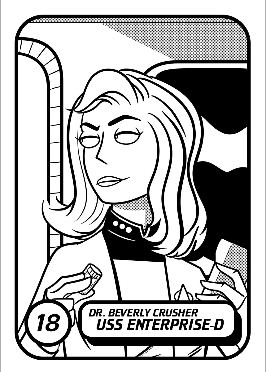 #Inktober Day 18 - Today's TNG cartoon trading card. Dr Beverly Crusher. Galaxy Glass. #StarTrek #StarTrekTNG #StarTrekPicard
