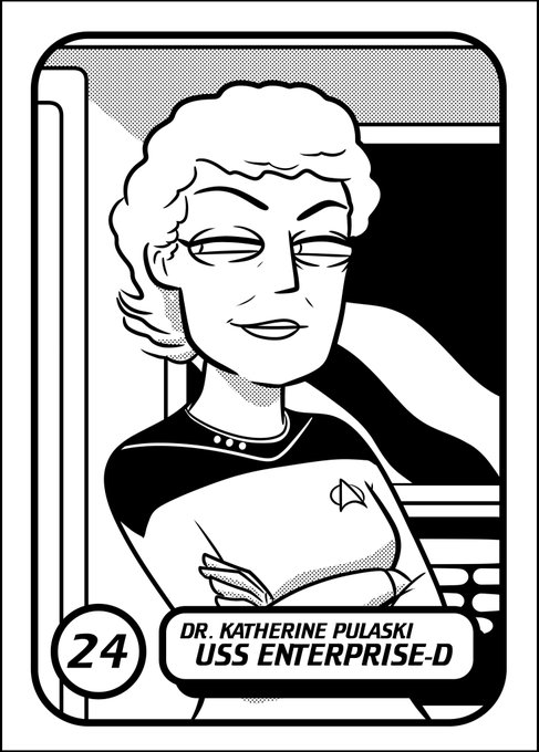 #Inktober Day 24 - Today's cartoon trading card, round off the TNG crew, Dr. Katherine Pulaski. Not one of my favourite characters but there's no denying her impact. #StarTrek #StarTrekTNG #StarTrekPicard