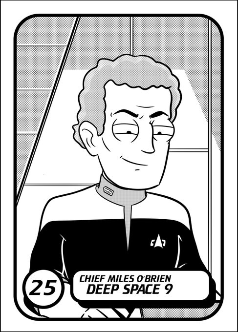 #Inktober Day 25 - Today's cartoon trading card, TNG into DS9 with Chief Miles Edward O'Brien. One of the all time greats. #StarTrek #StarTrekTNG #StarTrekPicard #StarTrekDS9