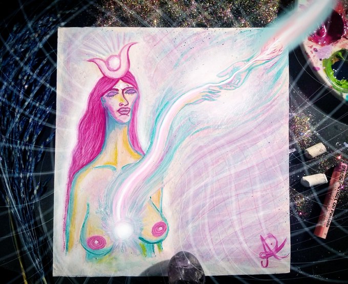 Dia 19: Laço #inktober2021 Tardamos mas continuamos! Mais uma arte surgida do processo da livre fluidez, apenas refletindo sobre o tema, e trazendo novos tons. Técnica mista, entre acrílica, nanquim, lápis de cor, giz pastel oleoso, e digital. Insta: @andyrmsk 🔄 = 🥰💓