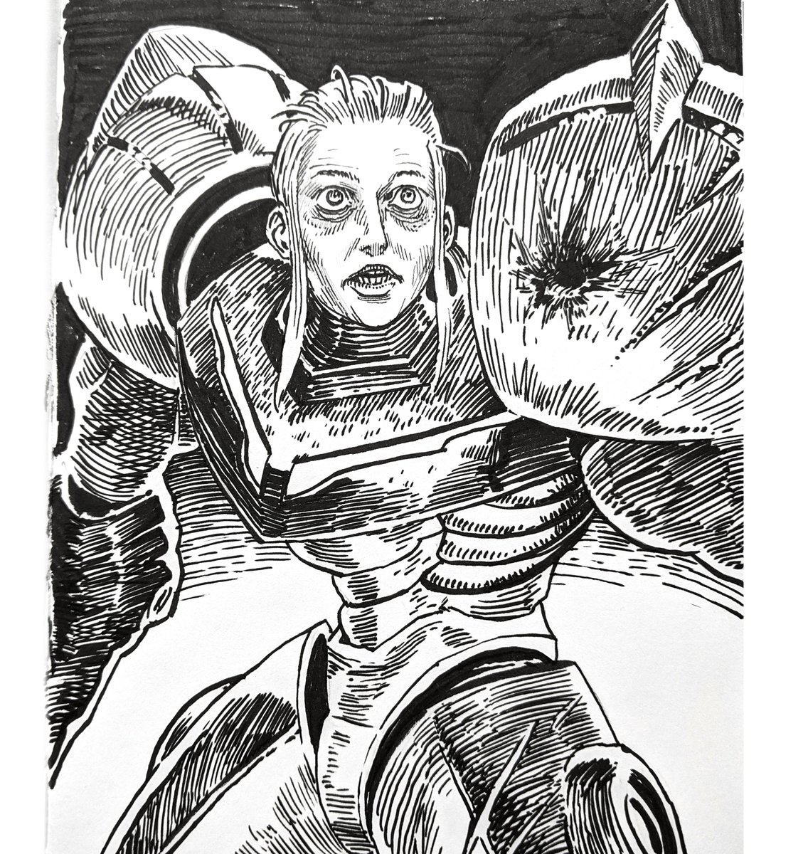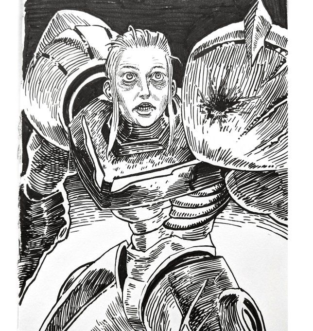 1 1 Day 6 was drawn the day before #MetroidDread came out. Samus is in a tight spot. #metroid #Nintendo #inktober2021 21/10/12 05:10