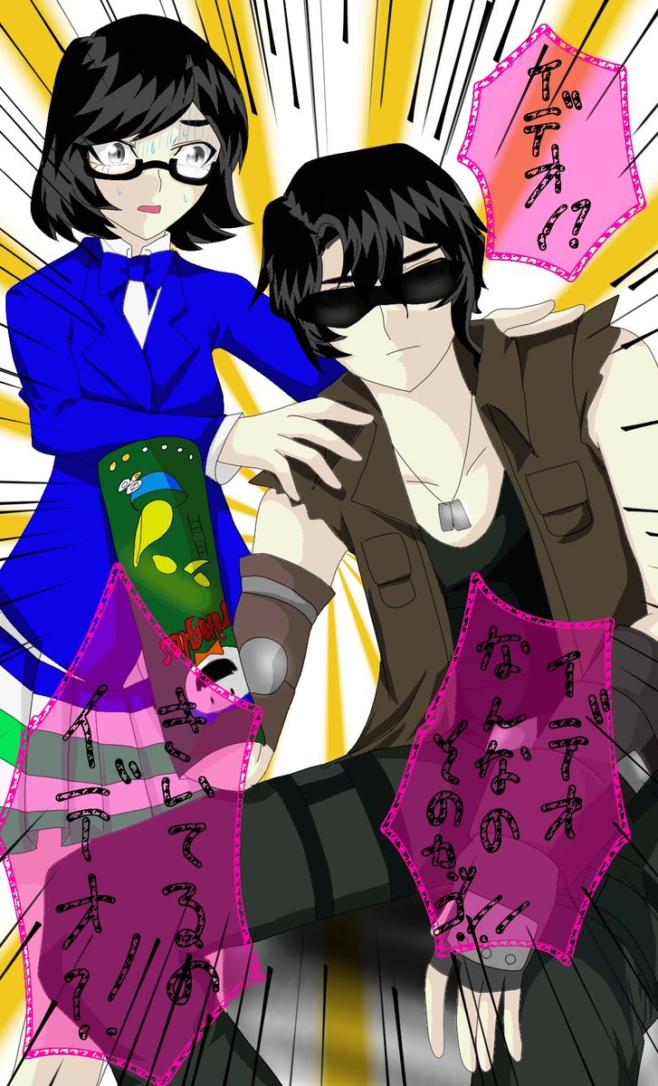 メガテン周年記念キーホルダー仲間入れてほしかったなって雑に描いたやつの再利用男主と女主ぴ #女神転生版深夜の60分1本勝負