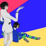 20 77 メガテン周年記念キーホルダー仲間入れてほしかったなって雑に描いたやつの再利用男主と女主ぴ #女神転生版深夜の60分1本勝負 23/03/29 23:00