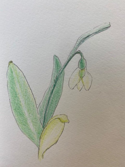 本日のお絵描き。スノードロップです。花言葉は「希望」コロナ禍でも希望を失わずにいたいですね。 #アナログイラスト