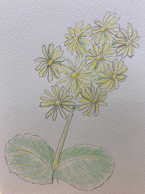 1 11 本日のお絵描き。石蕗(ツワブキ)の花です。黄色のかわいらしいお花です。(^^) #アナログ絵 21/12/08 22:56