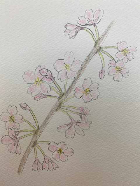 本日のお絵描き。桜の花を描きました。今が見頃ですね。この季節でしか見られない儚さも魅力の1つですね。🌸 #アナログイラスト #桜