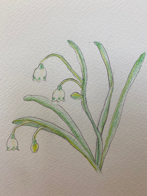1 13 本日のお絵描き。スノーフレークの花です。良い香りがする花なのです。 #アナログイラスト 22/04/06 23:19
