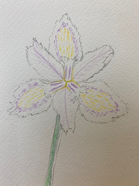 本日のお絵描き。著莪(シャガ)の花です。アヤメ科の花で、1日でしぼんでしまう儚いお花です。 #アナログイラスト