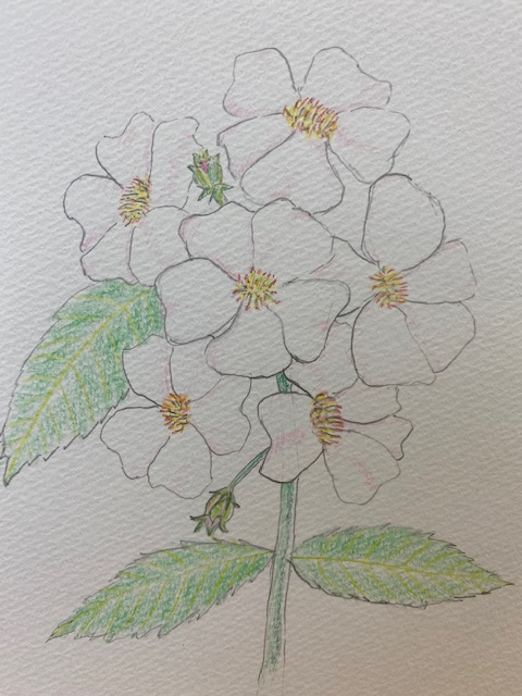 本日のお絵描き。6月15日の誕生花、野バラです。薔薇って漢字、難しいですよね。(^^; #アナログイラスト #アナログ絵