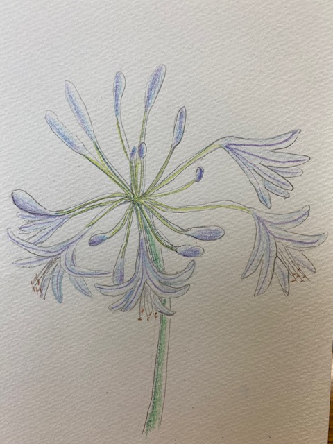 本日のお絵描き。アガパンサスです。7月25日、すなわち、紅莉栖ちゃんの誕生花なのです。紅莉栖ちゃんのお誕生日には、なにか描いておきたいですね…(^^; #アナログイラスト