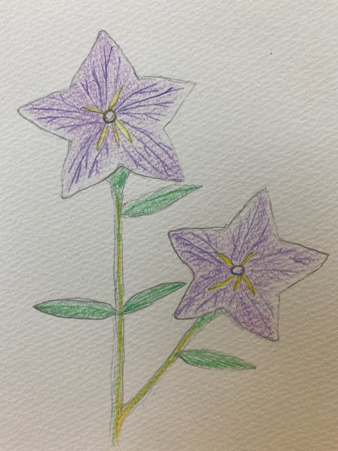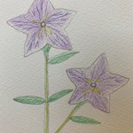 本日のお絵描き。桔梗の花です。有名な陰陽師・安倍晴明とも縁があるそうです。 #アナログイラスト