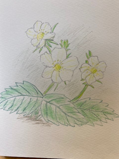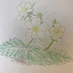 1 12 本日のお絵描き。いちごの花です。人に見せたところ「いちごの花って見たことないかも?」とのこと。うちでは昔、いちごを苗から育てたことがあるので、見覚えはあります。お花もカワイイですね、いちご🍓 #アナログイラスト 23/03/22 22:36