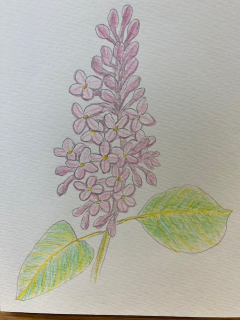 本日のお絵描き。4月12日の誕生花、ライラックの花です。花言葉は「初恋の思い出」ロマンチックですなぁ。🌼 #アナログイラスト