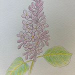 1 4 本日のお絵描き。4月12日の誕生花、ライラックの花です。花言葉は「初恋の思い出」ロマンチックですなぁ。🌼 #アナログイラスト 23/04/12 22:56
