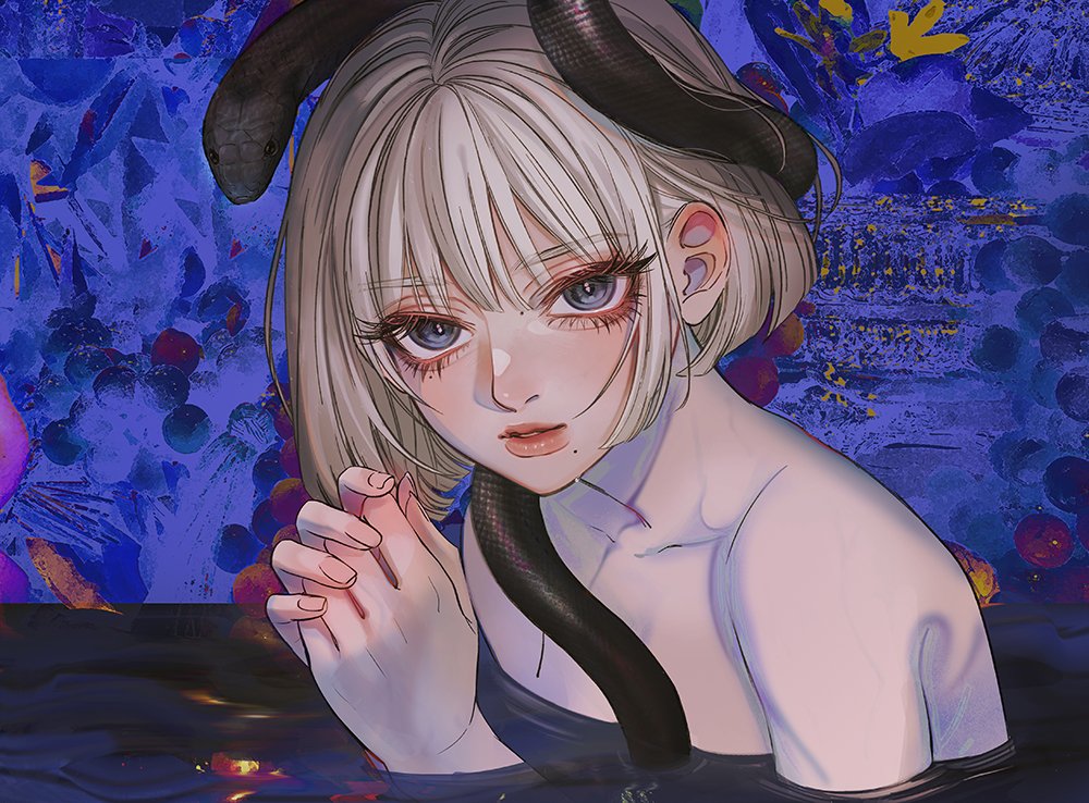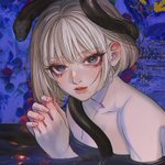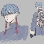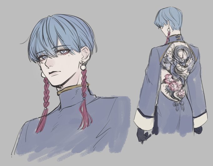 58 517 青髪チャイナ未亡人男が描きたくて息抜きに落書き、入れ墨見せるために背中が空いてる。先立った旦那の遺髪をピアスにしている感じ。旦那から継いでマフィアの頭してる~ 22/05/28 23:23