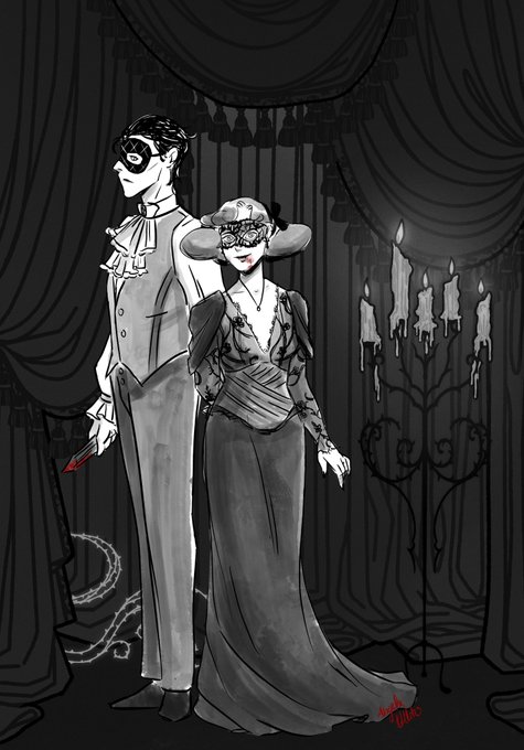 Silas and Lucy for #OCGala2022. The theme is Vampire masquerade which is a perfect theme for these two. Thanks to @VickyPandora for organizing!