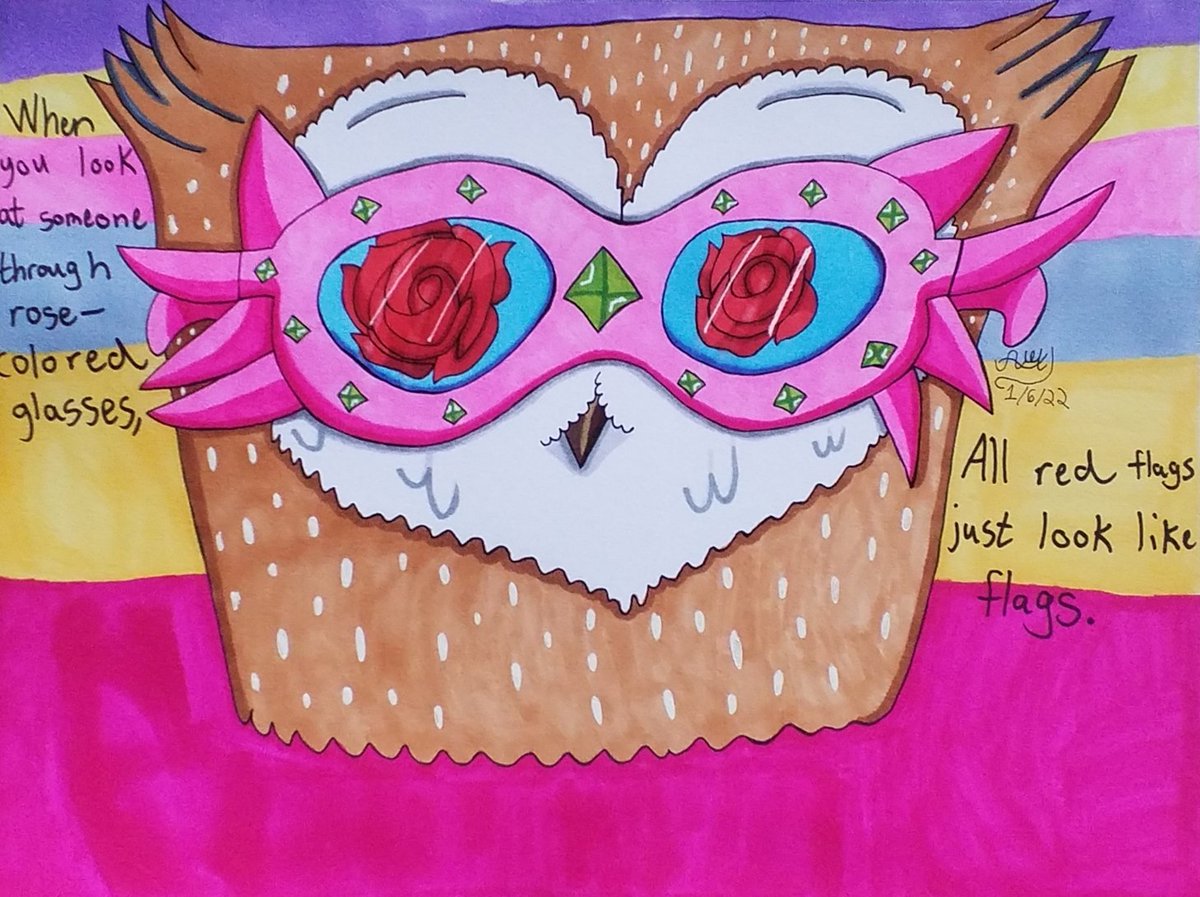 "When you look at someone with rose-colored glasses, all red flags just look like flags." I wanted to use Spongebob's sassy glasses for the drawing, which I don't regret. #BoJackHorseman#bojackhorsemanfanart#traditionalart