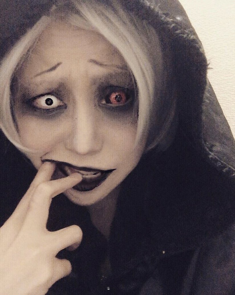 #原作の隣に自分のコスを貼る 東京喰種の神代利世🍖 隣に並べると似てなさが際立つ… 眼は全眼カラコン👀