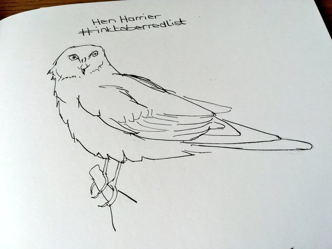 #Inktober catch up 30/31 #HenHarrier #inktoberredlist Nicknamed the 'Skydancer' due to its aerial acrobatics. An upland moorland bird persecuted to near extinction here in the UK. #iucnredlist #iucn #naturenow #stateofnature