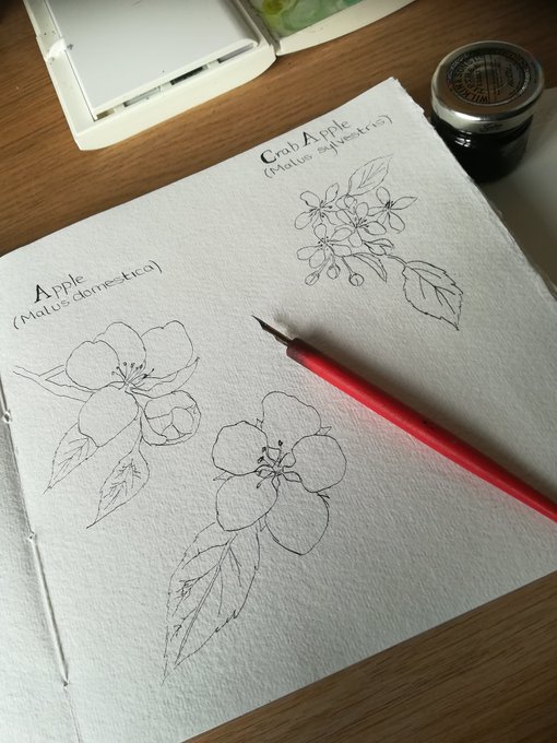 Today's #uktreetober Crab Apple blossom. I've also included our domestic variety. I'll post some more info with my second drawing tomorrow over on Instagram. #inktober #inktober2020 #drawtober #drawingmatters #drawingeveryday #drawingtolearn
