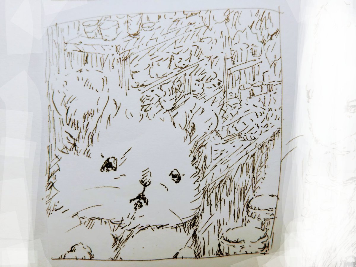 32 280 『アーサー君とアジサイ』 #一日一アニマル #インク #ペン画 #アナログ画 #アナログ一発描き 23/06/18 08:26
