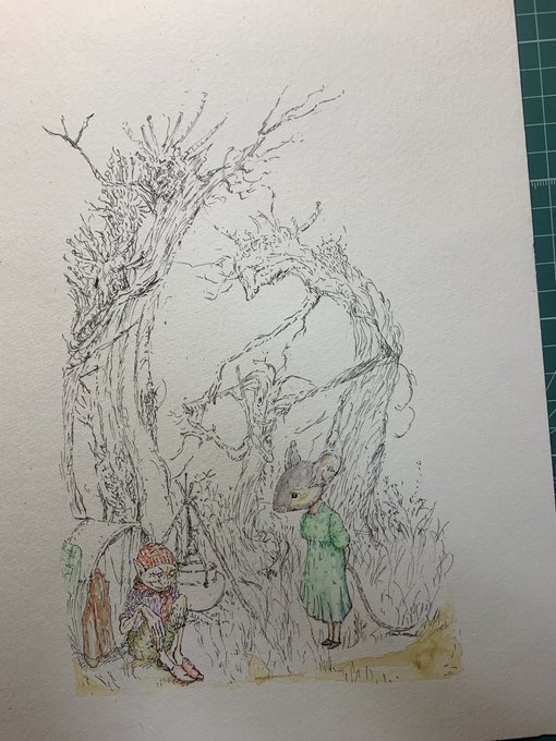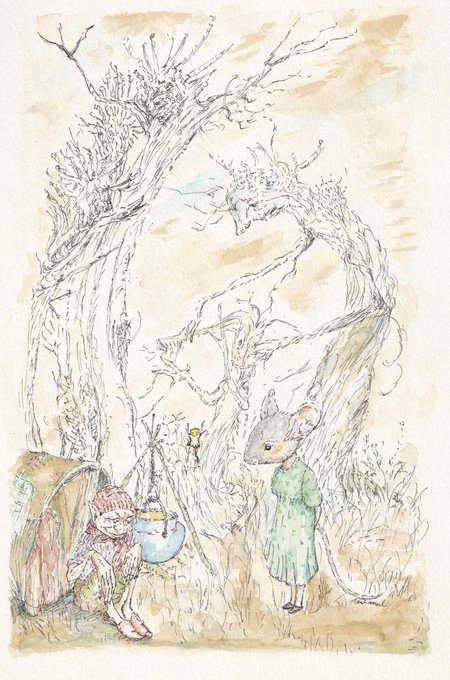 #ノネズミ #ヒト #カヤネズミ The man in wildernesses 抜粋 -マザーグースより- #あともう少し #220分 #一日一アニマル #ミリペン #水彩 #水彩画 #一日一絵 #13日目 動物が増える…💦