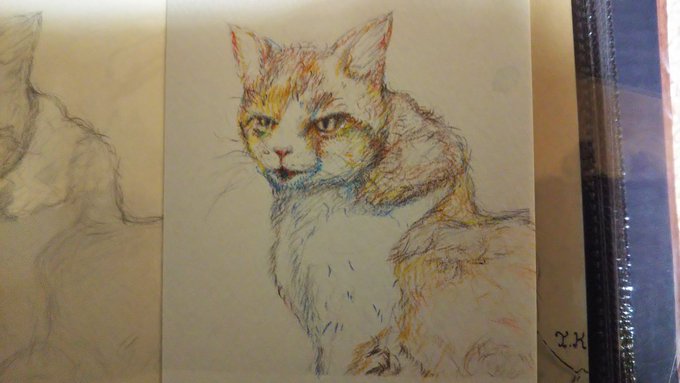 5 100 もう少し色を付けてみよう…🤔 スキャンしても色合いがうまく再現出来ないので、結局スマホにした😓#イラスト #猫 #ペンシル #水彩 #水彩色鉛筆 19/11/02 03:02