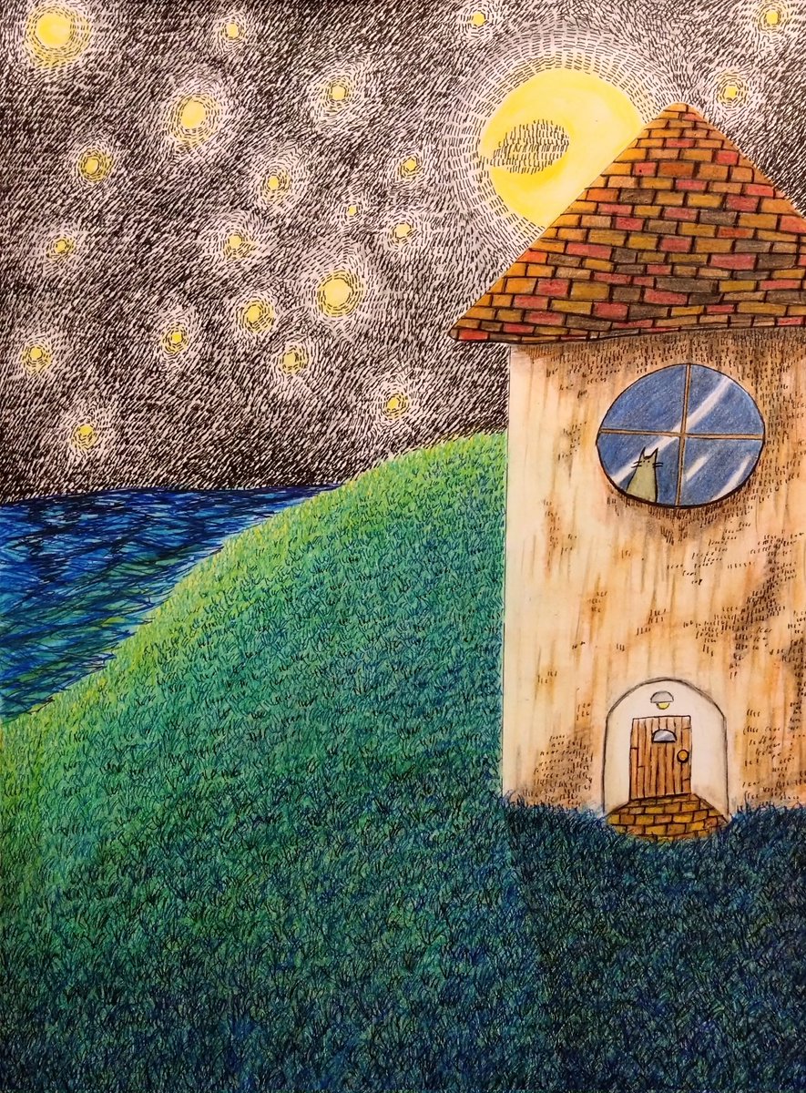 色鉛筆&ペン画の作品です! 家族の帰りを窓から「まだかな〜」と待っている子がいます🐾🐾 #色鉛筆イラスト #色鉛筆 #イラスト #絵描きさんと繋がりたい #ペン画 #アート好きな人と繋がりたい #アート #猫好きさんと繫がりたい