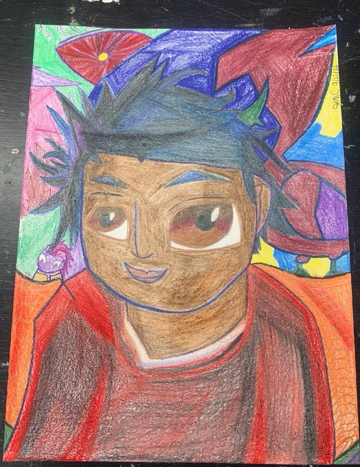 Keep in mind this is from a school project that I had to do and it is Zeno Robinson. This is my 1st time doing A portrait of a person it's rare if I do. I tried to symbolize 3 characters that he Is most popular for. #ArtistOnTwitter#drawing#artwork#art#artstyle