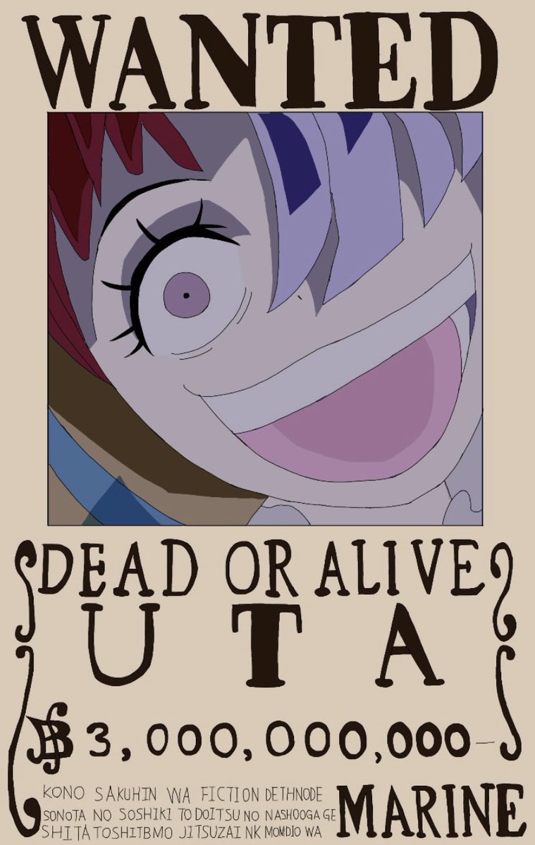 ワンピースウタの手配書書いてみました! 皆さんはどれくらいの懸賞金だと思いますか? #絵描きさんと繋がりたい #イラスト #ワンピース