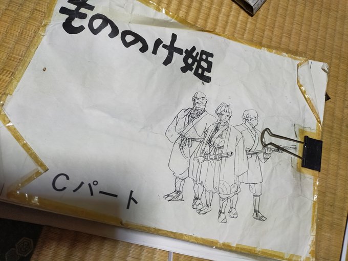当時いちスタッフとして与えられた『もののけ姫』の絵コンテです。 こんなの市販の絵コンテを拡大コピーすれば偽造なんていくらでも出来ますが、縁の破れを防ぐよう貼ったテープの褪色具合は、さすがに年月を物語っていますね。もう四半世紀前のものです。