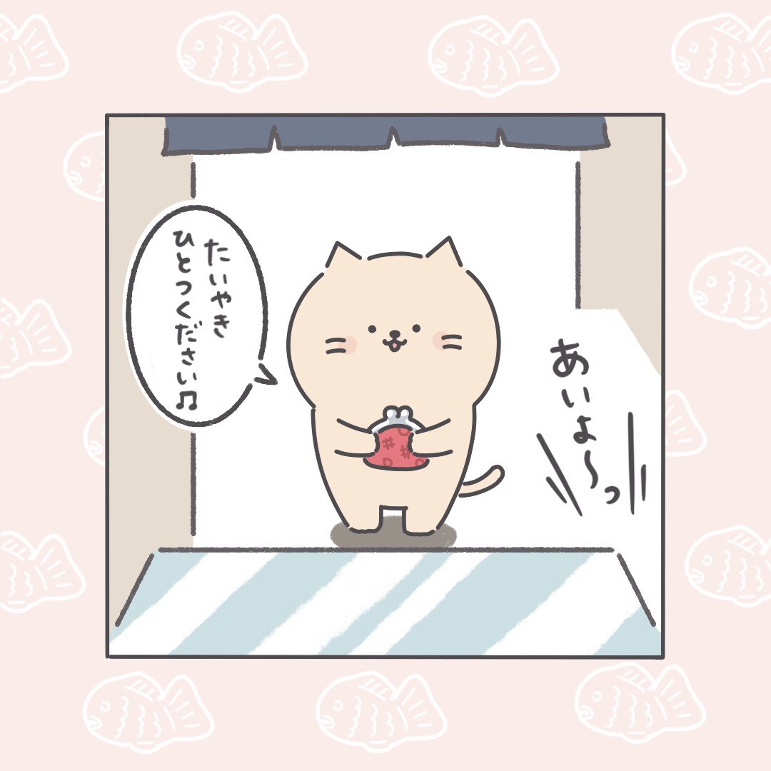 おはようございます☀️ ここのところ毎日寒いですね〜☃️ 寒い冬においしいおやつと言えば…たい焼き!🐟💓 にゃんすがたい焼き屋さんに行ってきましたよ😻💨 (続きます🍀 1/2) #イラスト #あにもる #漫画が読めるハッシュタグ
