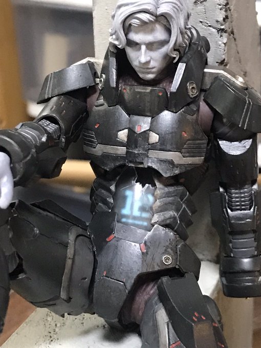 皆さんゲイルハウンド続々と完成されててあせる。僕はやっと方向性が決まったところで。このスーツの中の人はきっとイケメンだろうってことでこんな感じに。 手と頭は3Dプリンタ出力で。 #ティタノマキア #ゲイルハウンド #30人のゲイルハウンド展