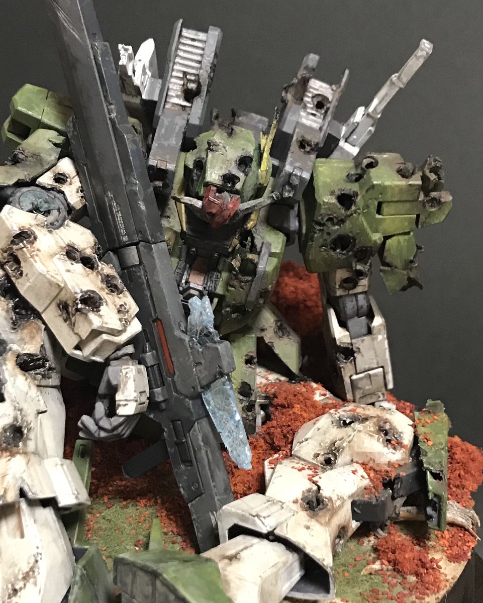 腹部はせっかくのクリアパーツなので活かそうと。ここにボワんと部隊番号が表示されるという設定で。戦闘でダメージくらってるけど。 クリアパーツ見ると割らずにはいられない病にかかってるんだと思う。 #ティタノマキア #ゲイルハウンド #30人のゲイルハウンド展