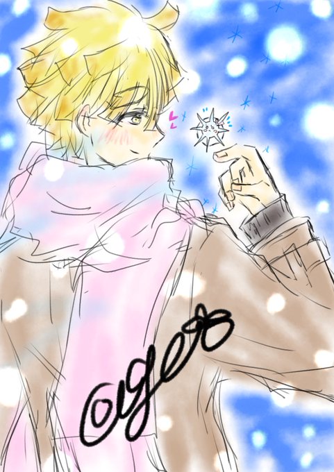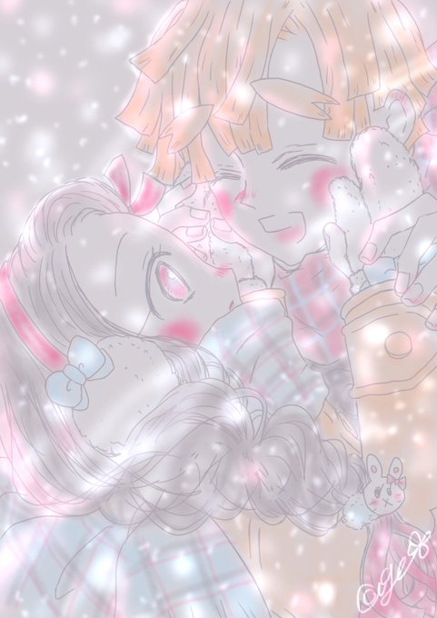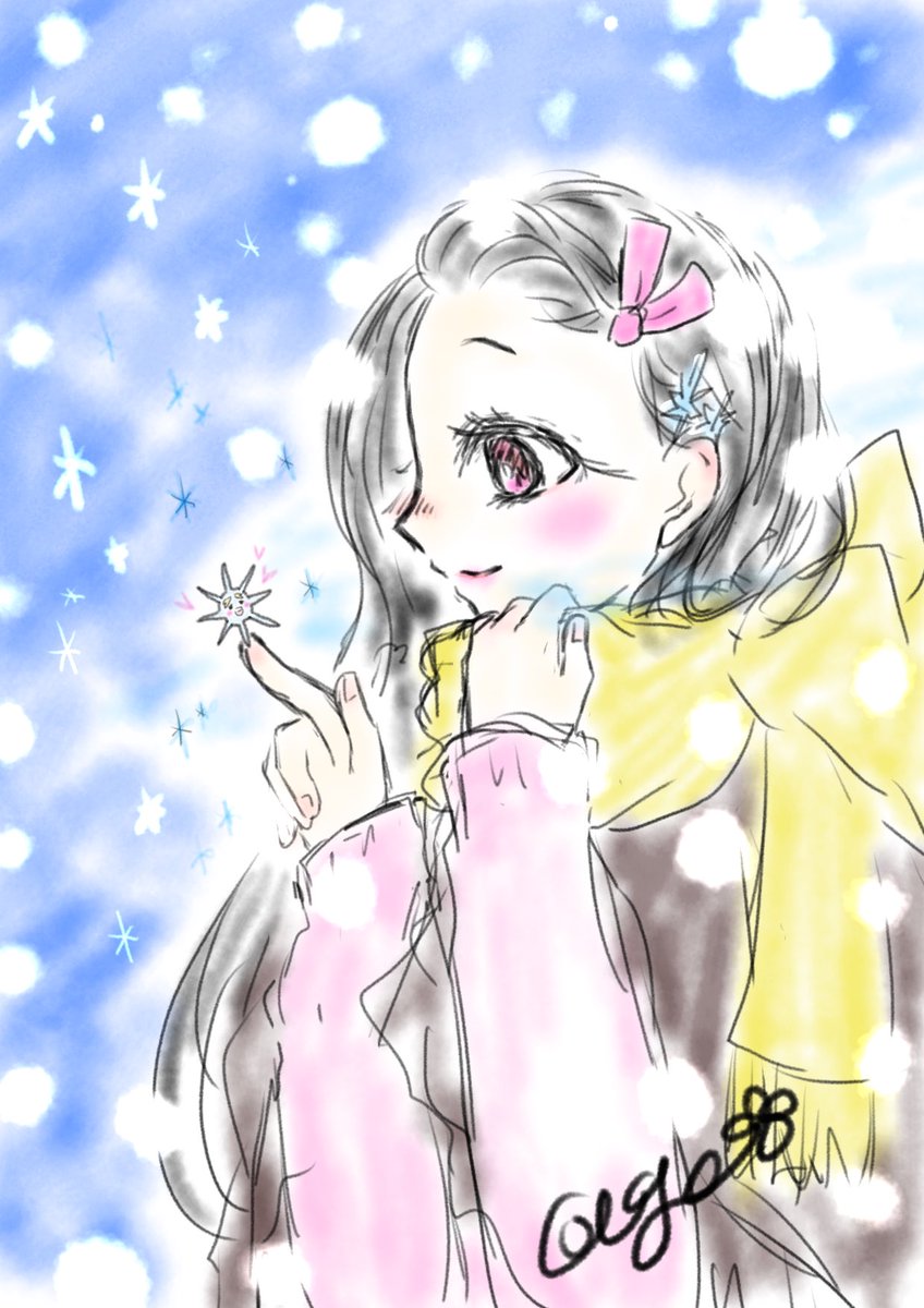 #ぜんねず版深夜のお絵描き60分一本勝負 お題「マフラー」 前回の「冷えた指先」の対になるイラストにしてみました( o̴̶̷̤̤̮ωo̴̶̷̤̤̮ )♡ 雪の妖精❄️️禰豆子ちゃんとの出会い✩゜*⸜(ू ◜࿁◝ )