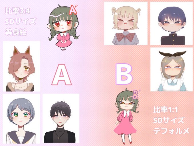 3 2 #無償イラスト企画 募集 5名以上の場合抽選です。 画像中のAとBのどちらか選べます。 イラストの使用方法はご自由ですが本アカウントIDの記載をお願いします。 条件 ⭕️フォロー&いいね&RT ⭕️できた絵をサンプルなどに使用することを許諾してくれる方 締切は5月21日まで 応募お待ちしております。 23/05/11 21:00