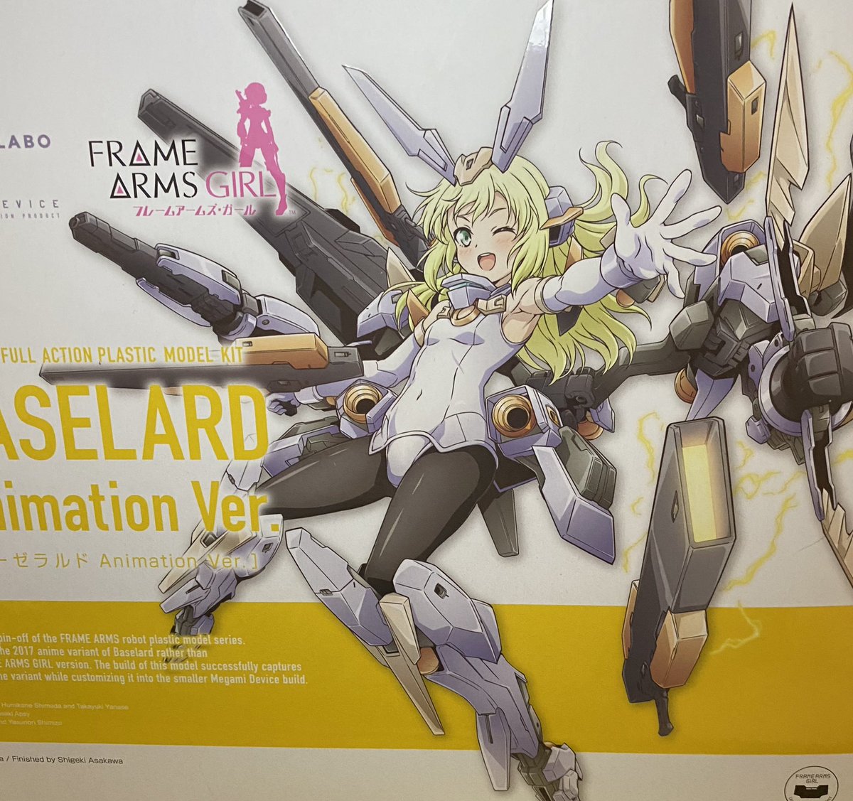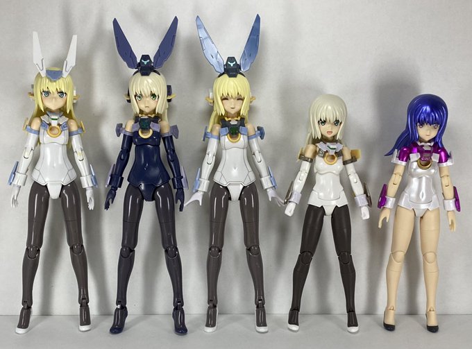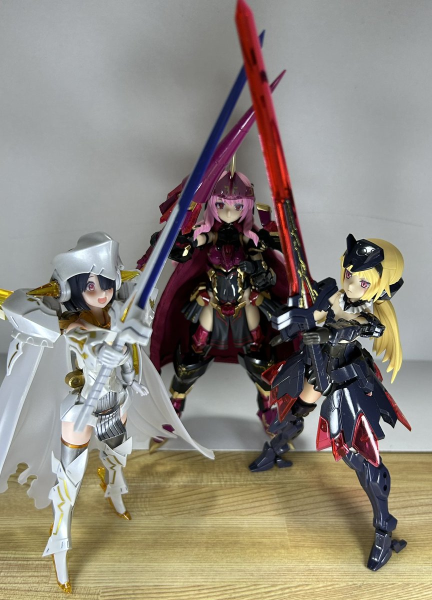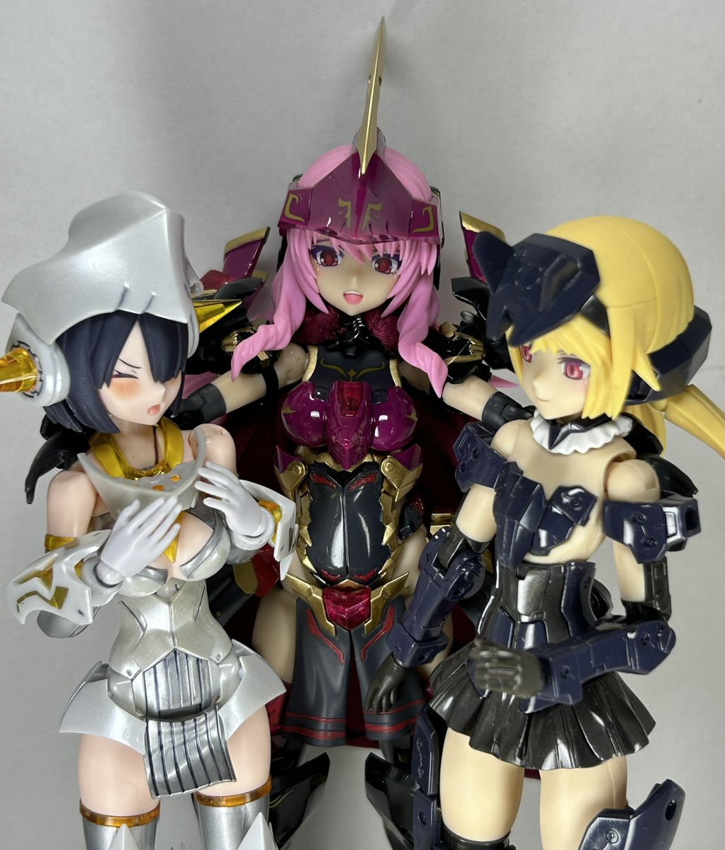 マジカルバーゼラルド おまけ。 「左から、最初のバーゼラルド・ちょっと暗いバーゼラルド・ちょっと名前が違うバーゼラルド・アニメのバーゼラルド・マジカルなバーゼラルド」 「全部同じじゃないですか!?」 #メガミデバイス #フレームアームズ・ガール