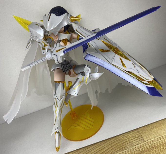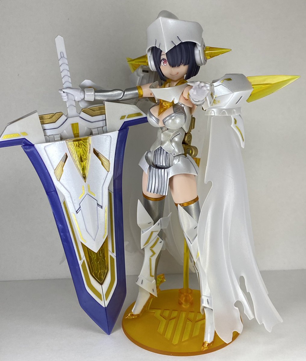 メガミデバイス アリス・ギア・アイギス 金潟すぐみ 完成報告1。 今回はとにかく部分塗装を頑張りました。シールで再現されていた部分や金銀部分はエアブラシで、剣盾も塗っちゃいました。そして全体につや消し。 素組みの写真も載せるので頑張りを見て。 #メガミデバイス #アリスギアアイギス